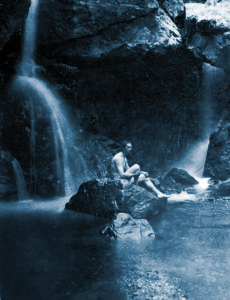 Maimeri è il nome della più conosciuta marca di colori per artisti in Italia. Meno noto è invece quello del suo creatore, Giovanni Maimeri, detto Gianni. Nato nel 1884, Gianni Maimeri fu un artista milanese che col fratello minore, Carlo (un chimico), sperimentò nuovi sistemi di impasto delle cere con i pigmenti puri e migliorò, attraverso formule innovative, la qualità dei medium, delle vernici e dei solventi, ottenendo risultati sorprendenti sulla resistenza e la brillantezza dei colori. Quelle scoperte, nate dalle esperienze maturate sulla tela da Gianni, tra il 1923 e il 1925, spinsero i due fratelli a fondare una fabbrica che rivoluzionò l’uso e la diffusione del colore fra gli artisti. Maimeri fu un pittore legato agli ambienti colti della borghesia milanese, dipinse soprattutto ritratti, paesaggi, interni borghesi, café chantant e musicisti. Tra l’altro, fu anch’egli musicista. Nella sua intensa biografia, tutta documentata, resta però un lato oscuro e tuttora inedito. Una parentesi che rivela una sensibilità visionaria e onirica, accostabili ai valori dello Sturm und Drang ma intrisa di potente modernità espressionista, profondamente diversa da quella che esprimerà nella pittura degli anni maturi. Una foto del 1905 ci mostra il giovane Gianni seduto su un enorme masso posato al centro di una larga pozza d’acqua, un bacino roccioso nel quale si riversano potenti cascate. Uno scatto perfetto e rigoroso, al limite del fotomontaggio, è una messinscena in cui la posa adamitica che assume giustifica quel suo sguardo orgoglioso, meditabondo e fiero, quello di un giovane Saffo, alla Von Gloeden oppure di un eroe decadente caprese, alla Diefenbach. Qui Gianni ha venticinque anni, un corpo asciutto ed elegante, un futuro da eroe romantico. Siamo all’alba del nuovo secolo, e mentre in città si fa la rivoluzione futurista, lui, giovanissimo, si spinge alla scoperta degli Orridi dipingendo quadri dove il soggetto è il movimento dinamico della cascata che sgorga da una caverna oscura. Lo fa en plein air, anzi, da dentro la grotta, per riprodurre in diretta i colori luminescenti del fogliame spruzzato dall’acqua a bordo cascata. Così, rinchiuso in una gola naturale compie la sua personale e solitaria rivoluzione futurista into the wild, utilizzando per eseguire questi suoi primi dipinti, gli stessi impasti cromatici di Boccioni (penso a quello della Rissa in Galleria a Brera).